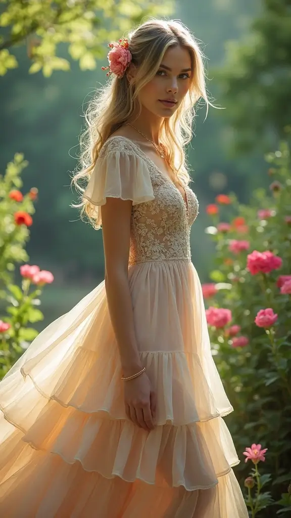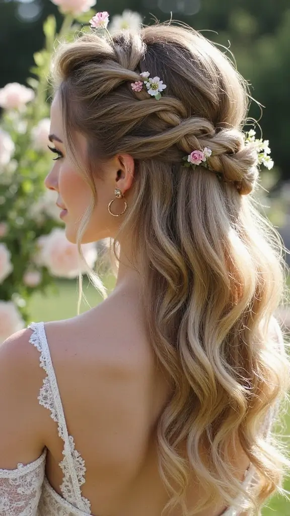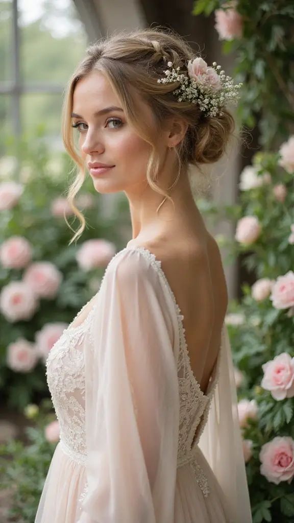 You want an updo that feels soft, romantic, and easy to wear for a special day. A soft and romantic updo fits perfectly with medium hair. Loose curls fall at the back, and face-framing strands stay near your cheeks. It highlights your features without looking stiff.