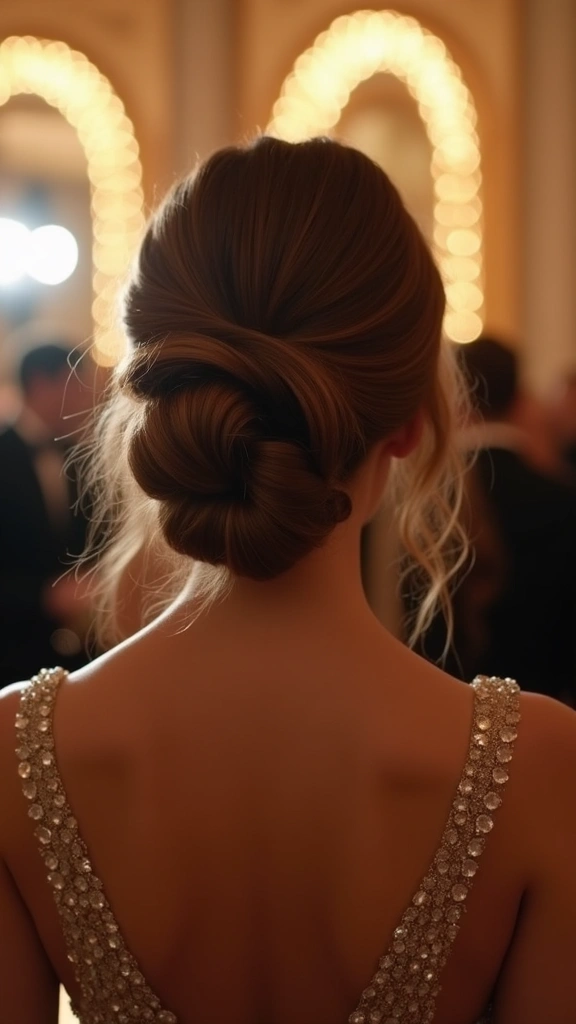This updo works for weddings, proms, or a special night out. It adapts to different textures: if your hair is fine, tease the crown a little for grip and smooth the ends for softness. A light mist helps keep movement on the dance floor.