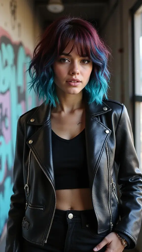 For those daring enough to step outside the box, a funky multicolored long bob is the ultimate expression of personality. This bold hairstyle can incorporate various colors, from pastels to vibrant hues, creating a stunning visual effect that stands out.