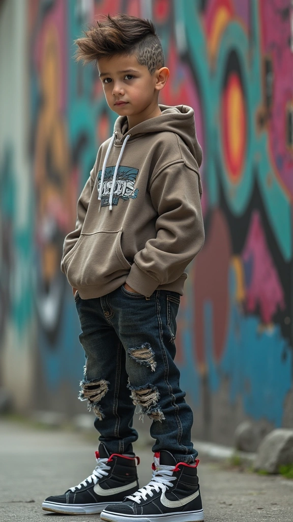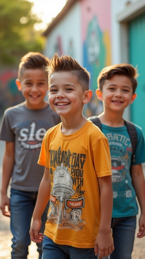 This cut keeps its style through gym, play, and quick after-school runs. Spikes catch light and add height, so hair looks lively all day. The fade helps the sides stay clean as hair grows. It grows out well too, so you won’t see a lumpy shape too soon.
