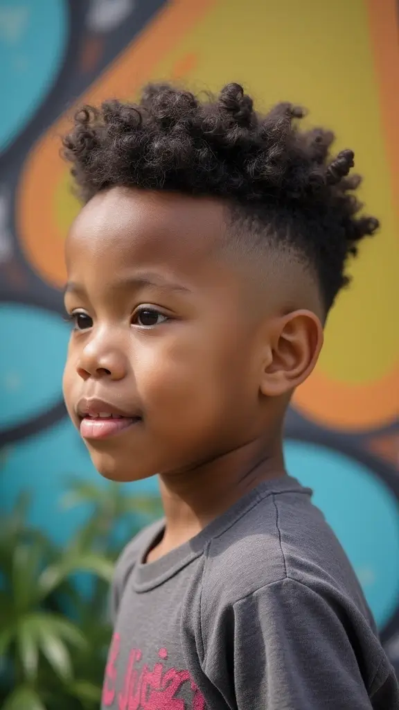 The Curly Fade fits boys who have natural curls. It pairs a sharp fade on the sides with curls kept on top. The look shows off texture in a clean, playful way.