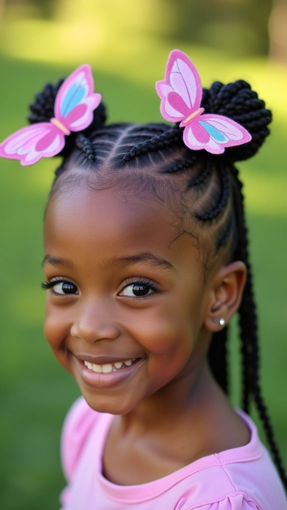 If you want a cute, durable style that kids love and that works with natural hair, butterfly cornrows fit the bill. They blend neat braids with wing-like shapes that stand out.