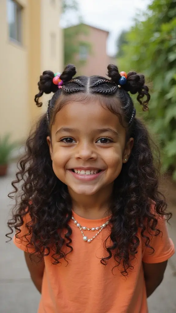 Want a fun twist on traditional cornrows? Curly ends bring a cheerful, bouncy finish to every braid. This style keeps the rows neat while adding lively curls at the tips. It’s a smart choice for kids who love to switch up looks for school, playdates, or parties.