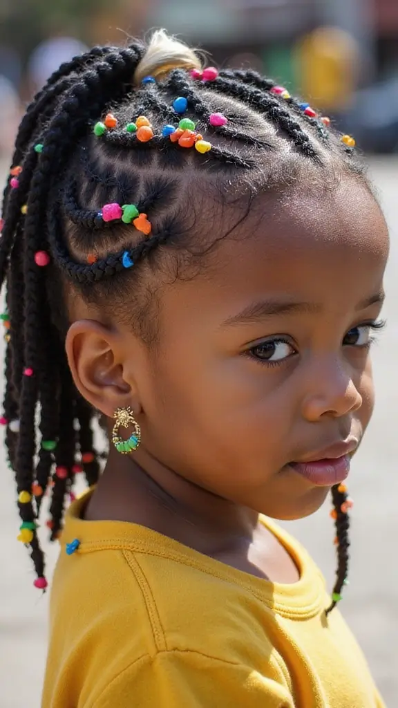 Accessorizing cornrows can add a personal touch and make the style even more fun! Consider using colorful beads, ribbons, or hair clips. You can also incorporate colorful cornrows for a vibrant look. Let your child pick their favorite accessories to express their personality and make the hairstyle truly theirs!