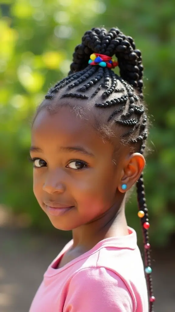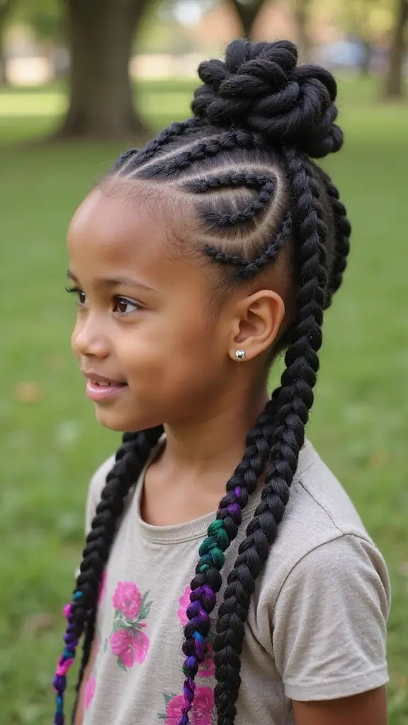 Cornrow hairstyles are a traditional style where the hair is braided close to the scalp in neat rows. They’re perfect for kids because they are not only stylish but also serve as protective styles that help maintain the health of natural hair by minimizing breakage and tangles. Plus, they can last for weeks, making them a practical choice for busy school days!