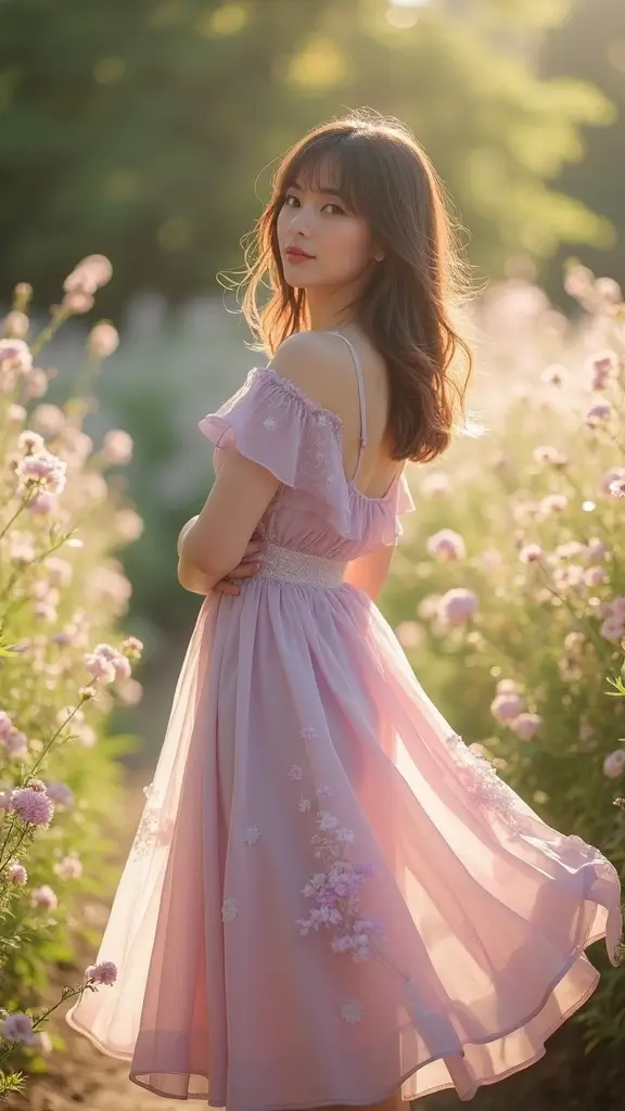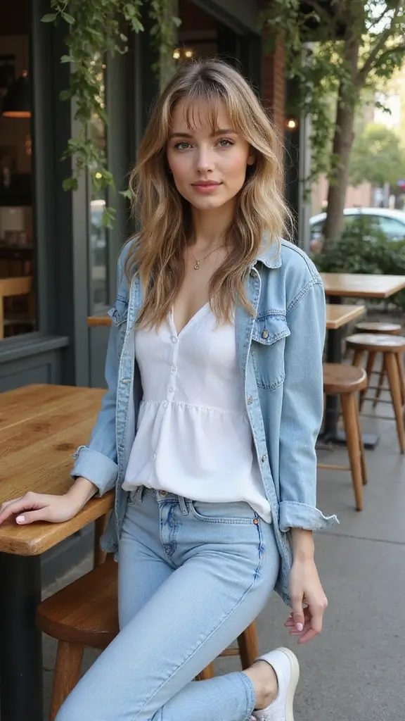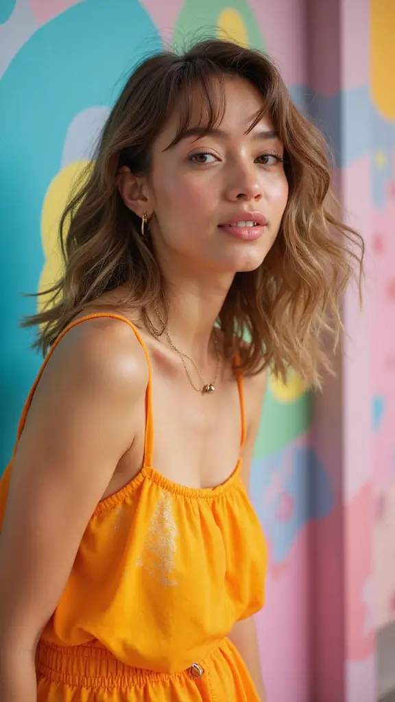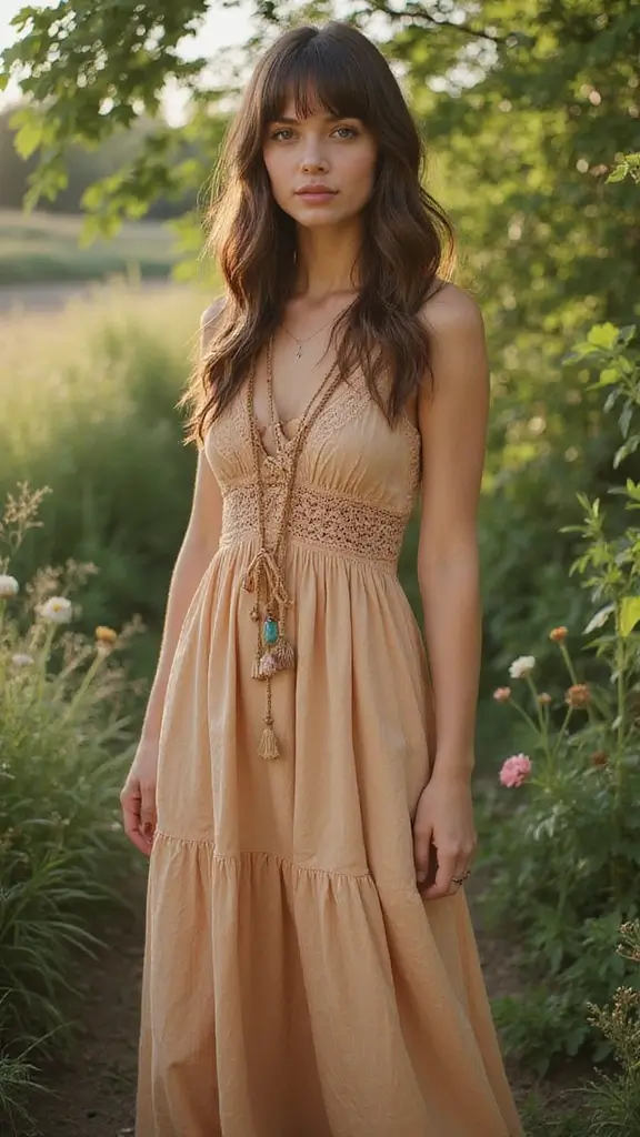 – Use a wide curling wand to create loose waves. Run your fingers through to loosen the shape for a relaxed look.\n\n- Apply a light texturizing spray at the roots to add movement without stiffness.\n\n- Keep the bangs soft with a gentle brush or your fingers. For special nights, pin a small piece behind the ear with a delicate clip.\n\n- Choose clothing colors in soft tones like cream, blush, or sage to enhance the romantic vibe.