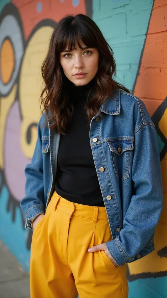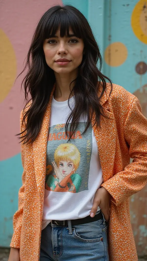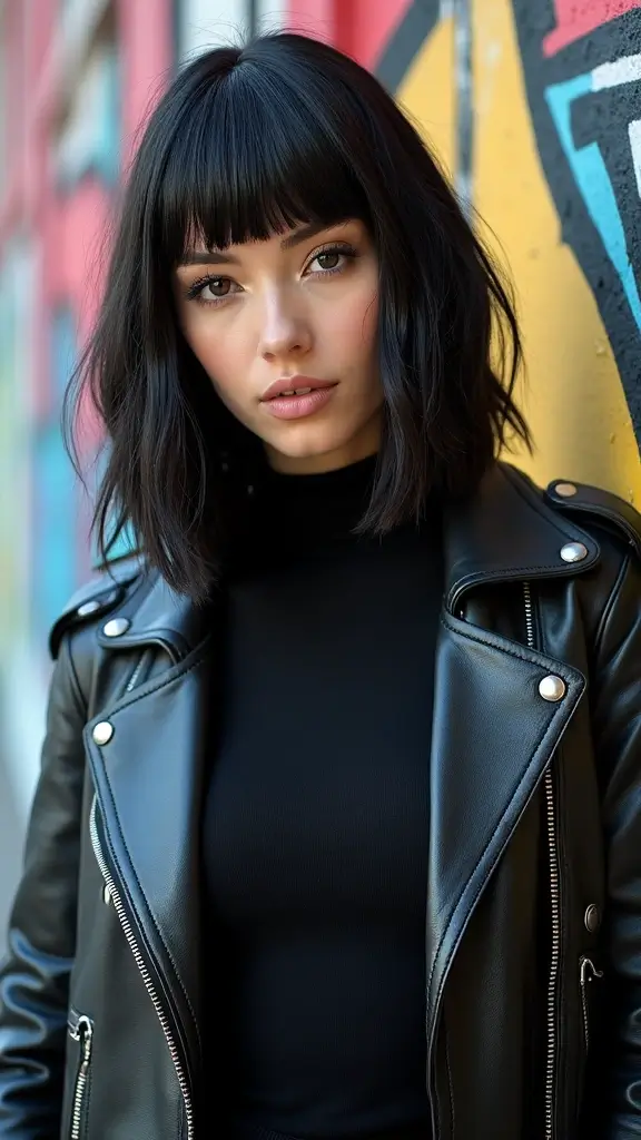 Pair this cut with bold tops or all-black outfits to match the energy. Schedule trims every 6–8 weeks to keep the bangs fresh and the layers balanced. Sleep on a silk pillowcase to reduce frizz.