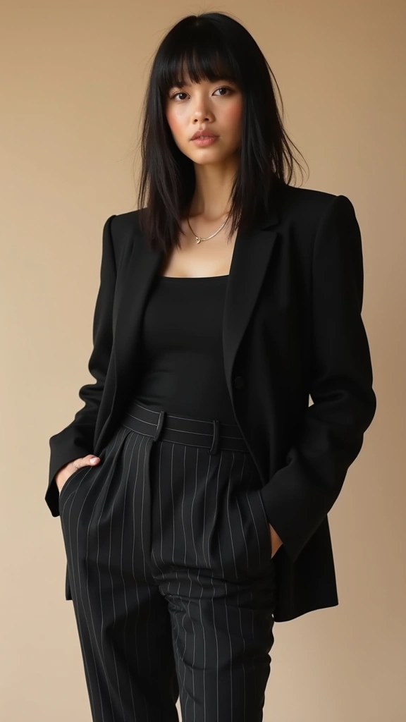 The lines are clear, the layers are defined, and the bangs draw attention to your eyes. It reads professional without feeling stiff, so you can wear it from office meetings to evening plans.