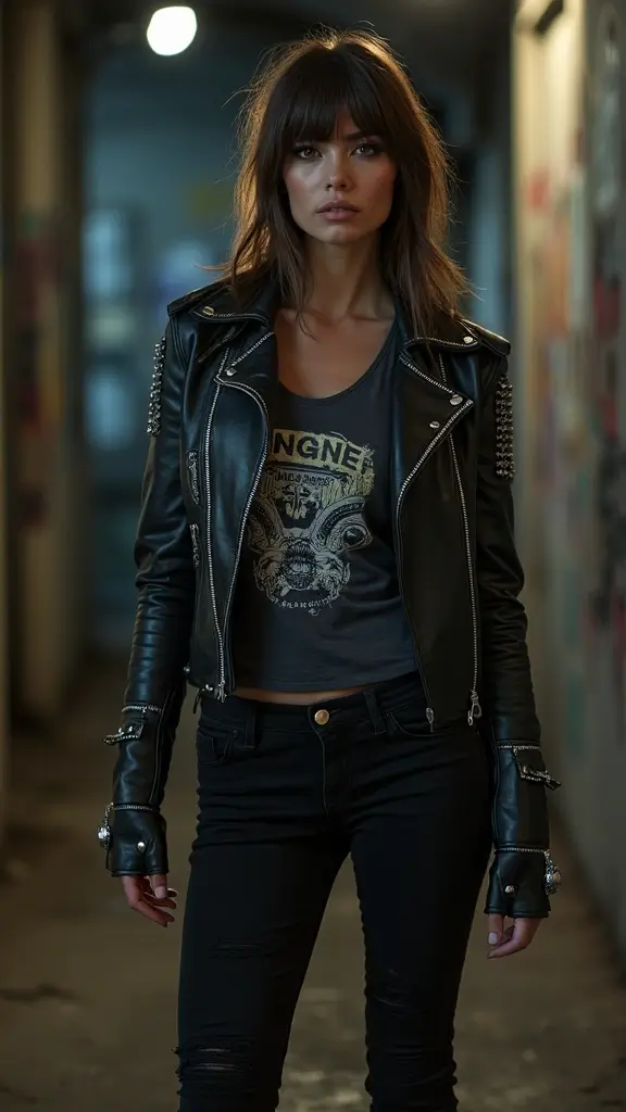– Finish the vibe with a leather jacket to seal the rocker feel.