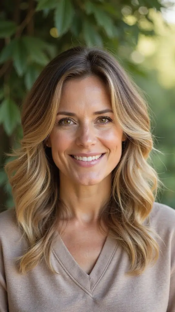 Let your stylist add long layers that frame the face for a natural shape. Subtle highlights add depth without shouting color. To style, use a lightweight mousse on damp hair, then scrunch and diffuse or air dry. You can part it on the side or in the middle to change your vibe. This cut stays chic with little effort and works for casual days or special events. Keep waves fresh with products and a trim every 6-8 weeks.