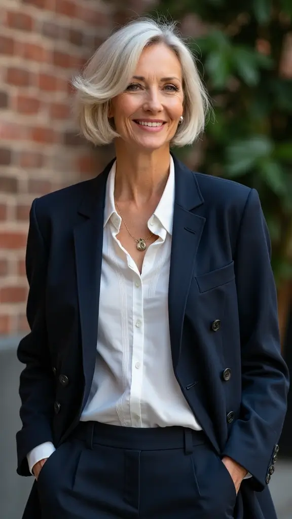 If you want a chic cut that stays sharp, try the angular bob. It’s shorter in back and longer in front, creating a clean, eye catching line for women over 50.
