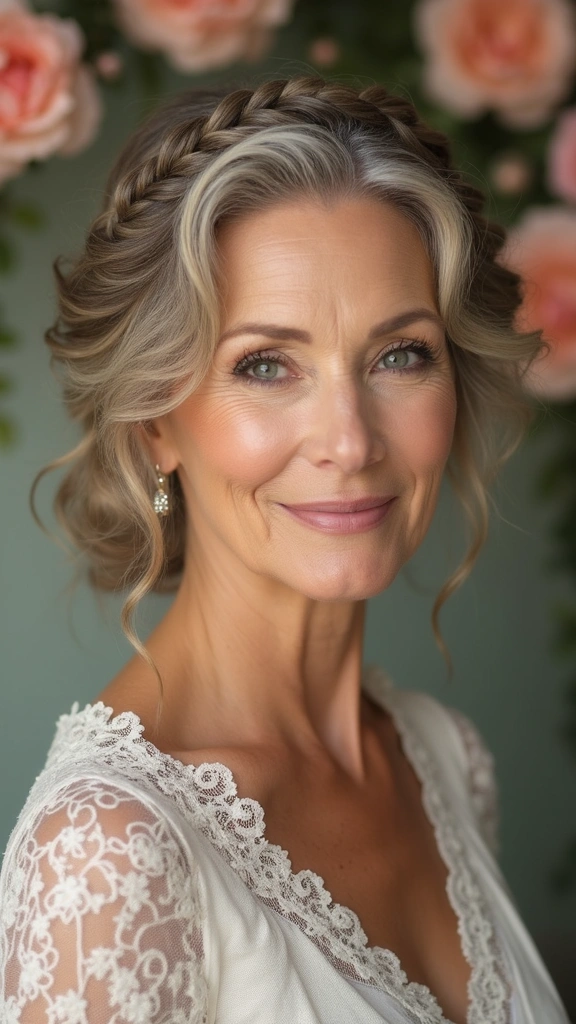 Looking for a soft romantic look for mid-length hair? The braided crown adds elegance without a heavy updo. It sits gently on your head and works for weddings or a date night.
