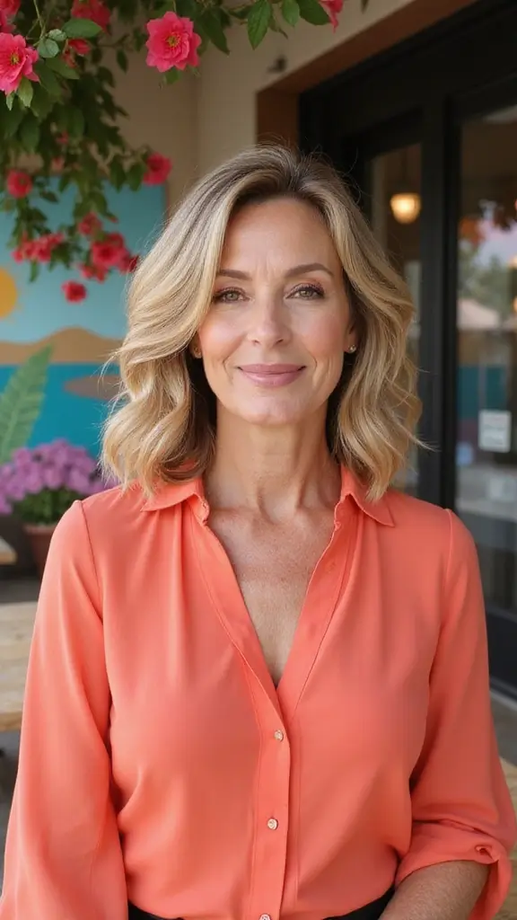 Ready to make a statement? Try bold color on your medium-length cut. Deep reds, sunlit blondes, or soft pastels can refresh your look and brighten your face. You can go for highlights, balayage, or all-over color to fit your style. For over 50, color that complements your skin tone feels confident and lively. Talk to a stylist about shade options and placement. To keep color bright, use color-safe shampoos and conditioners, wash with cool water, and limit heat styling. With the right shade and care, bold color adds personality without overpowering your natural beauty.