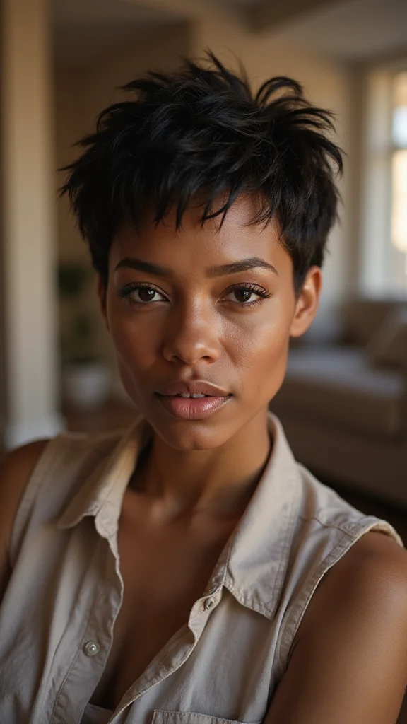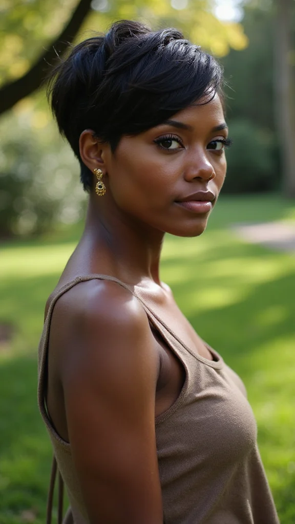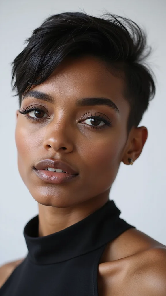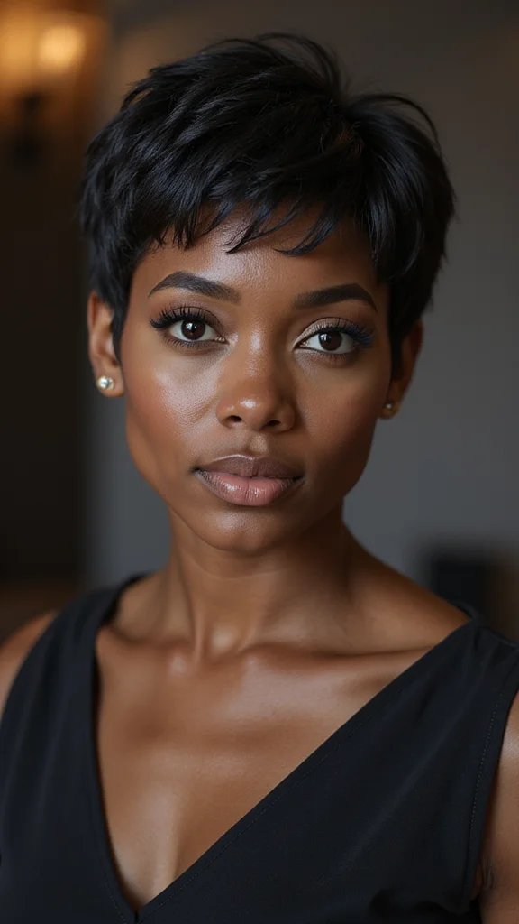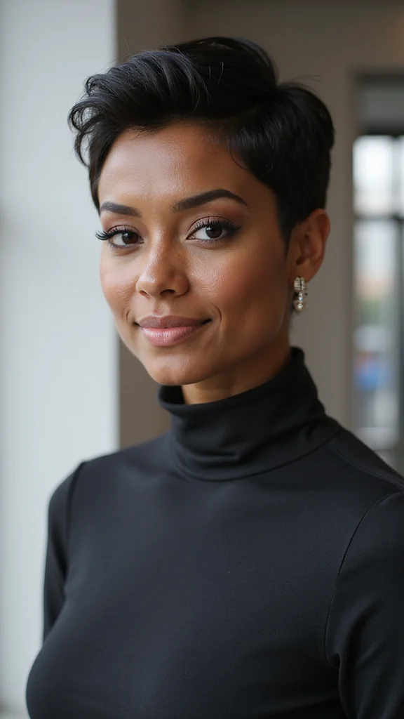 A sleek and shiny pixie cut is perfect for those wanting a polished and sophisticated look. This style emphasizes a smooth finish, making it ideal for formal occasions. Think about deep jet black or glossy dark brown shades to enhance the shine. This hairstyle will draw attention to your features, making you shine in any setting.