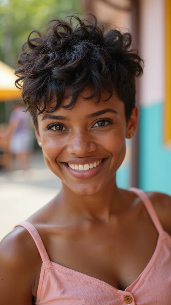 This curly pixie invites you to celebrate your natural beauty while keeping it fun and chic!