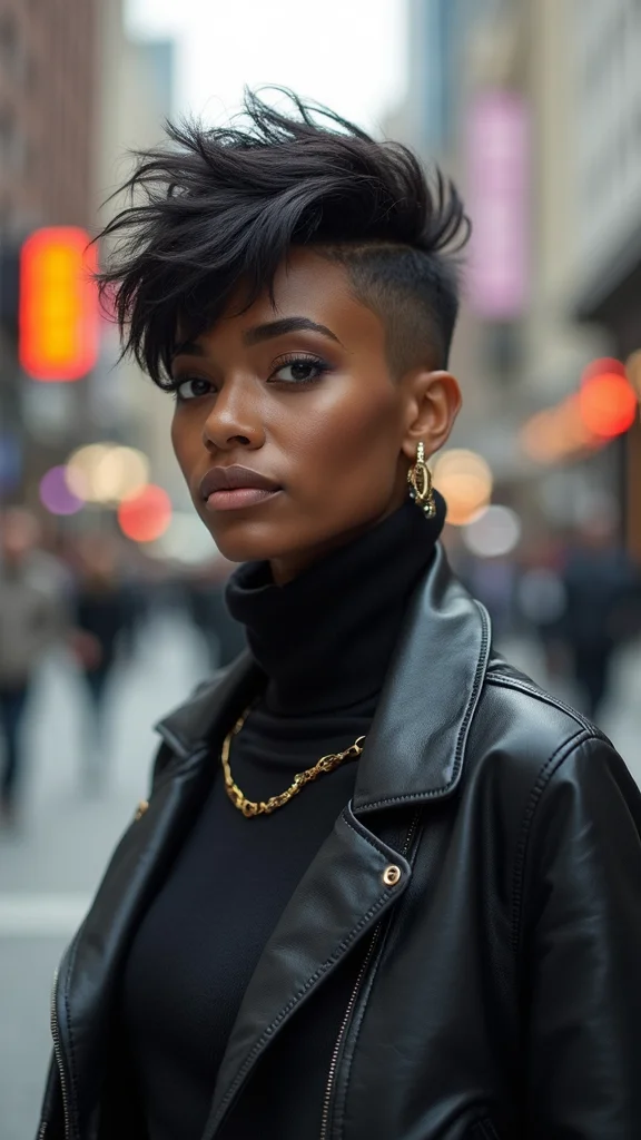 This edgy pixie cut invites you to showcase your creativity and confidence!