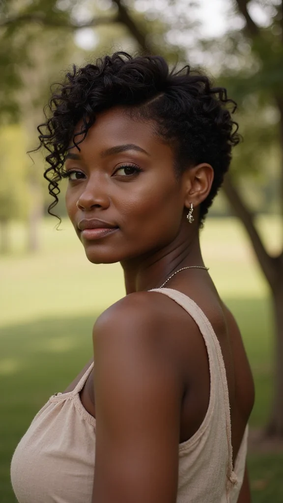 The curly pixie cut with a twist brings a fun and fresh vibe to your hairstyle. This playful look allows your natural curls to bounce freely while adding a subtle twist at the crown. Consider using a rich auburn or honey blonde shade to brighten up your curls. This style is trending for its ability to combine elegance with a hint of whimsy, making it ideal for casual outings.