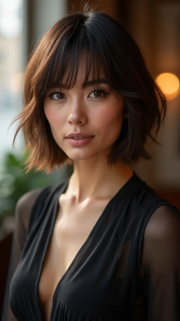 The shaggy bob with bangs is a fresh option that transforms your look effortlessly.