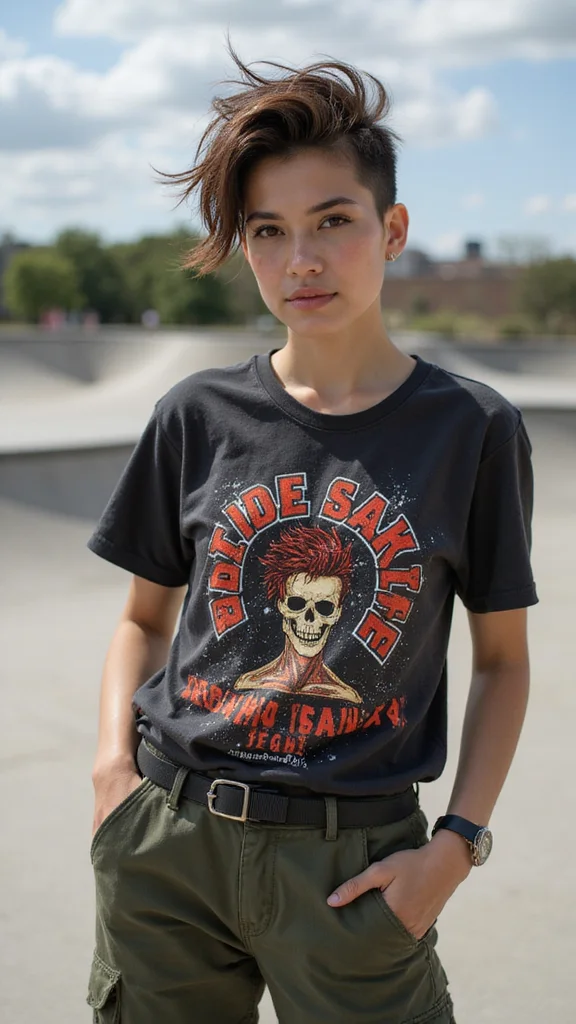 The side-swept pixie adds a soft, romantic touch to an edgy punk style. With one side longer and swept across your forehead, it creates an alluring silhouette. This hairstyle is perfect for those who want elegance with a hint of rebellion.