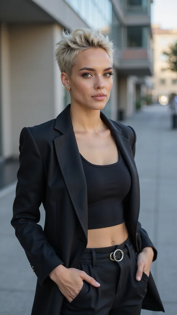 Use strong-hold gel or wax to achieve and maintain those spikes. This look is perfect for busy women who want to showcase their edgy side without elaborate styling. Pair it with statement jewelry to enhance your bold appearance!