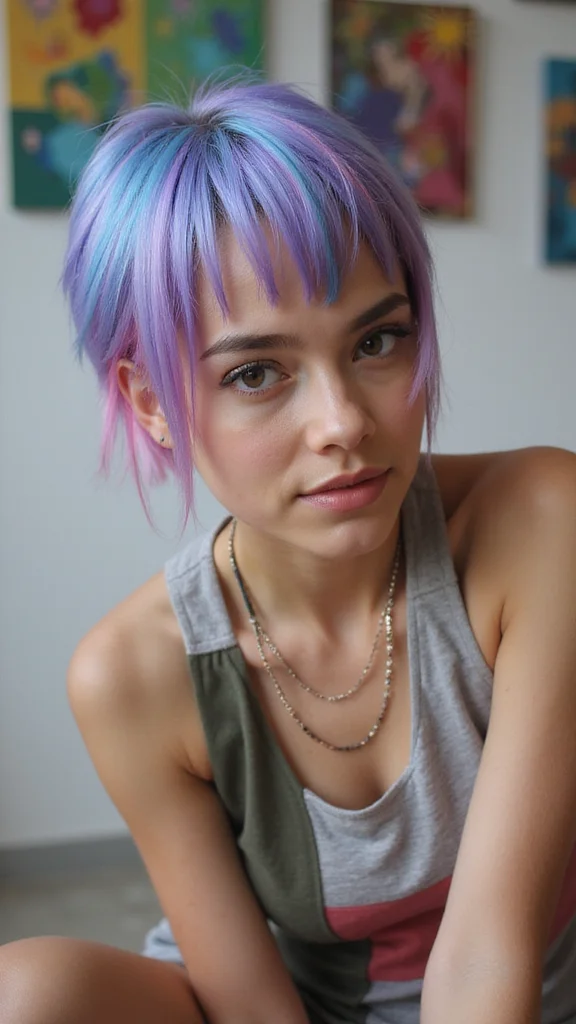 Opt for a soft pastel pixie cut for a subtle yet trendy punk look. Gentle shades like mint green or pale lavender give this hairstyle a fresh vibe. This style is gaining popularity for its low-key yet stylish appearance.