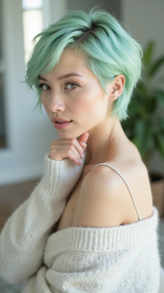 A neon green pixie cut is a bold choice for those who want to stand out. The vibrant color combined with sharp, layered edges gives it a punk flair while keeping it playful. You can see this style trending on Pinterest, inspiring many to take the plunge into vivid colors.