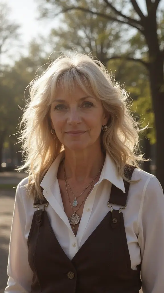 The vintage shag brings back the charm of classic styles while staying fresh and trendy. This haircut captures the retro vibe of the ’70s, making it a fun choice for older women. Layered throughout, it pairs beautifully with playful outfits, giving you a youthful appearance.