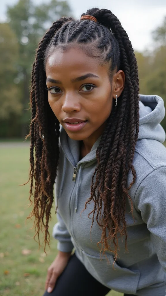 Opt for a low-maintenance style where your braids are secured in a ponytail or bun. This keeps your hair out of your face and prevents tangling. Pair this look with a sweatband for a sporty touch while keeping stray hairs in check. You can look stylish while staying active with this versatile hybrid hairstyle!
