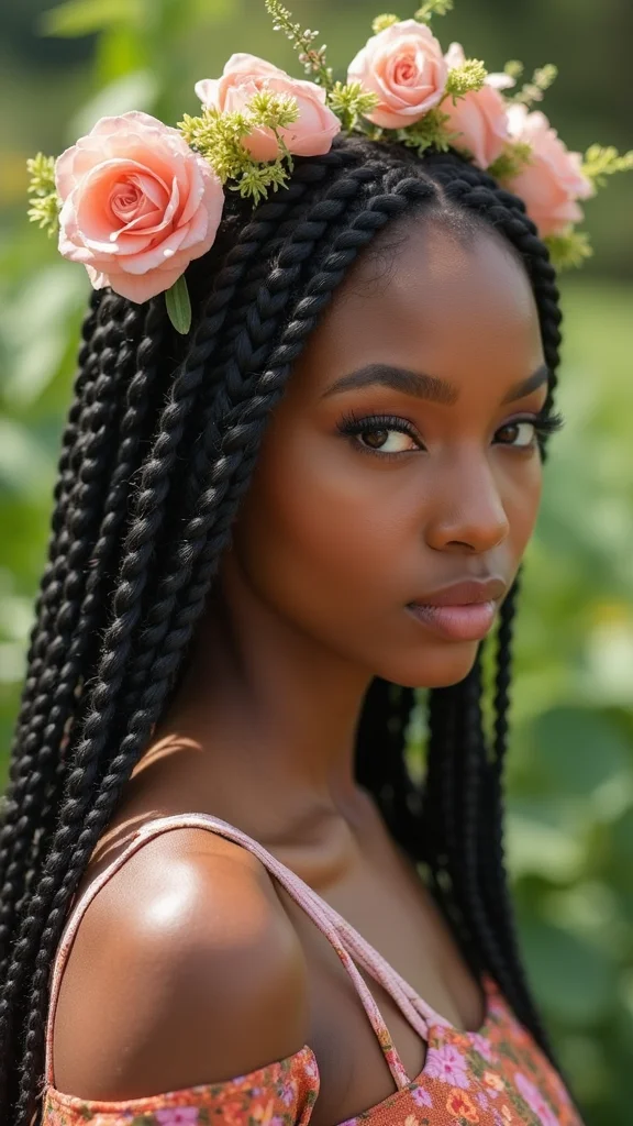 If you’re drawn to a relaxed, bohemian style, this hybrid look is perfect for you! Imagine soft, flowing box braids paired with loose, carefree cornrows. This combo enhances natural textures and gives off a laid-back vibe. You can accessorize with flowers, feathers, or fabric wraps to complete the boho aesthetic.