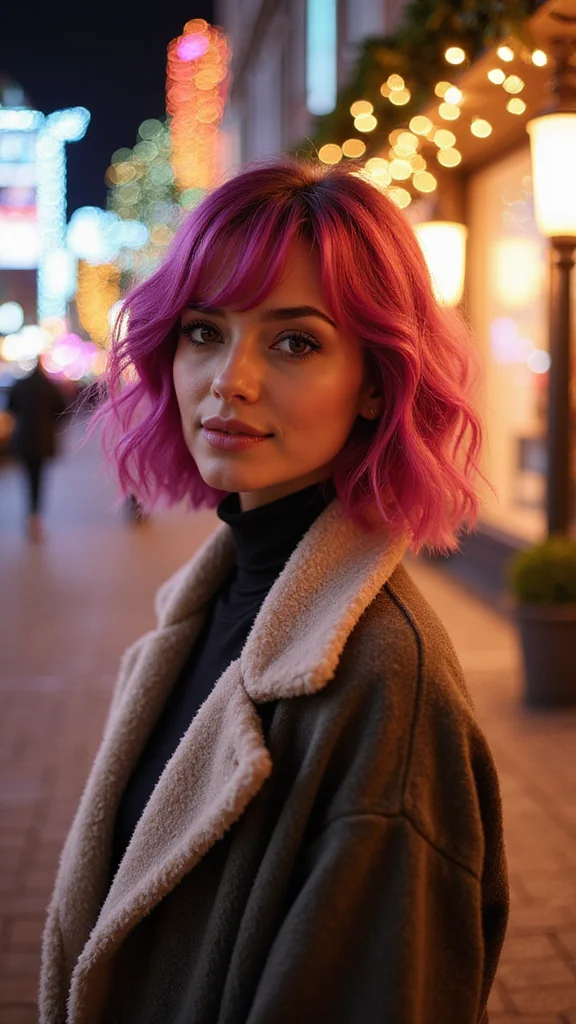 The wavy lob, or long bob, strikes the perfect balance between long hair and a classic bob. This style, sitting just above the shoulders, allows for versatility without the commitment of long hair. Waves add a relaxed, beachy feel, making it ideal for winter parties and cozy nights.