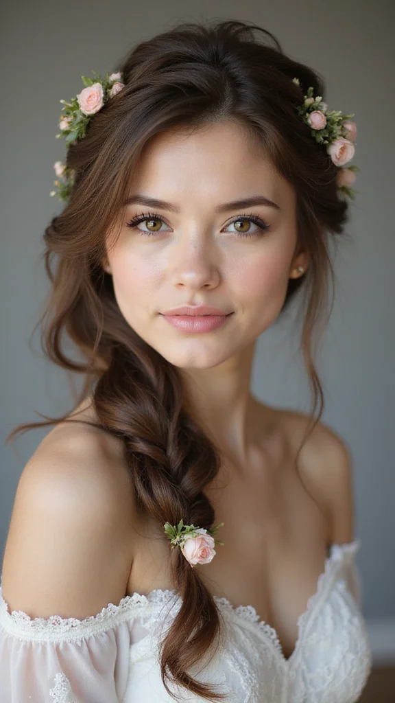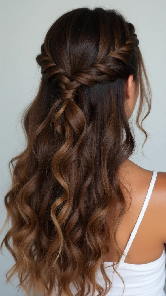 The half-up braided crown combines elegance and playfulness, making it a delightful style. This look features flowing hair while framing the face beautifully with an intricate braid across the top. It’s an excellent choice for weddings, proms, or any special occasion where you want to shine.