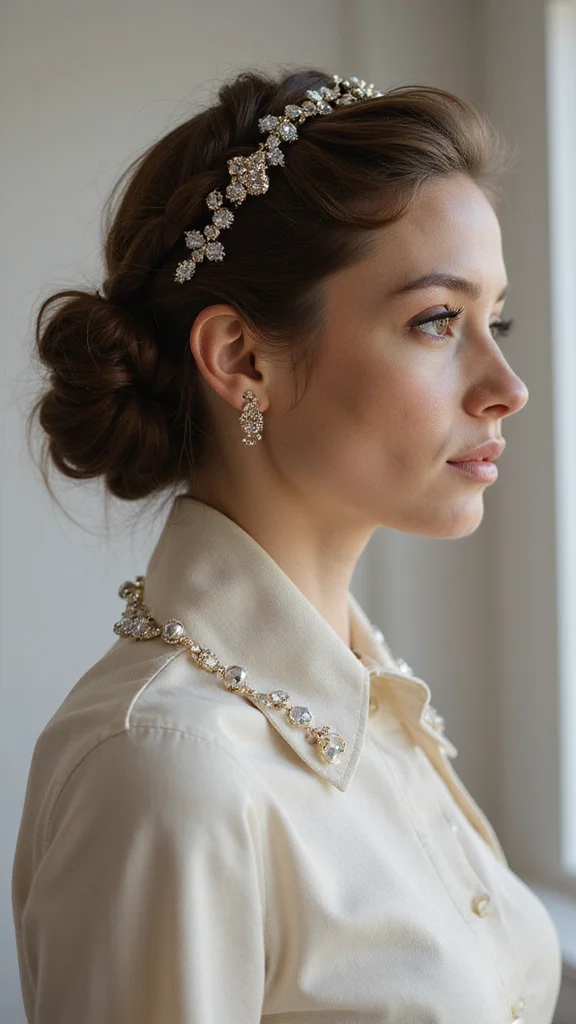 Combining a braided bun with glamorous hair accessories creates a regal appearance that’s perfect for special occasions. This style features a beautifully woven braid wrapped into a bun, adorned with sequins, flowers, or jeweled pins. The added accessories elevate the entire look, making it fitting for weddings or formal gatherings.