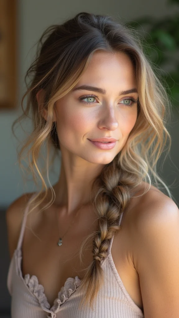The braided side ponytail effortlessly mixes fun and style. This look features a braid that starts at the front and wraps around to a ponytail at the side. It’s perfect for casual outings and adds a youthful touch to any outfit.