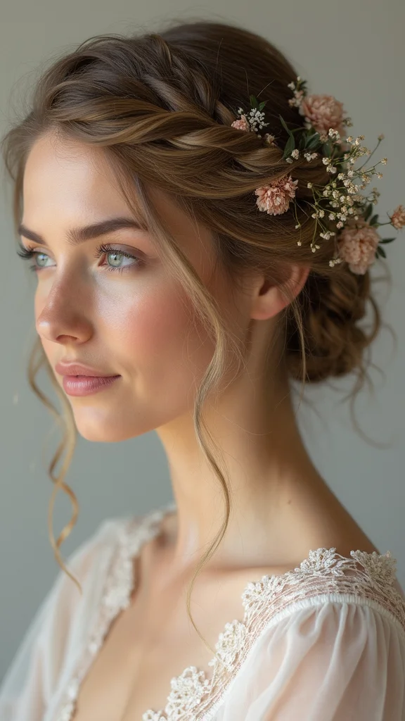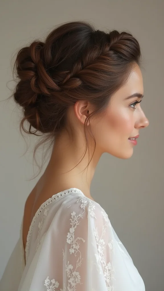 A braided side bun combines a braid with a chic bun for a romantic hairstyle. This look is ideal for special events and evening outings, providing a sophisticated yet whimsical feel. You can wrap the braid around the bun or accentuate one side for added style.
