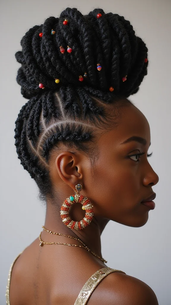 A cornrow updo with beads is not only stunning but also rich in cultural significance. This style features intricate cornrows arranged in a chic updo, often adorned with colorful beads that add a playful twist. It’s a fantastic choice for festivals, parties, or celebrating your heritage.