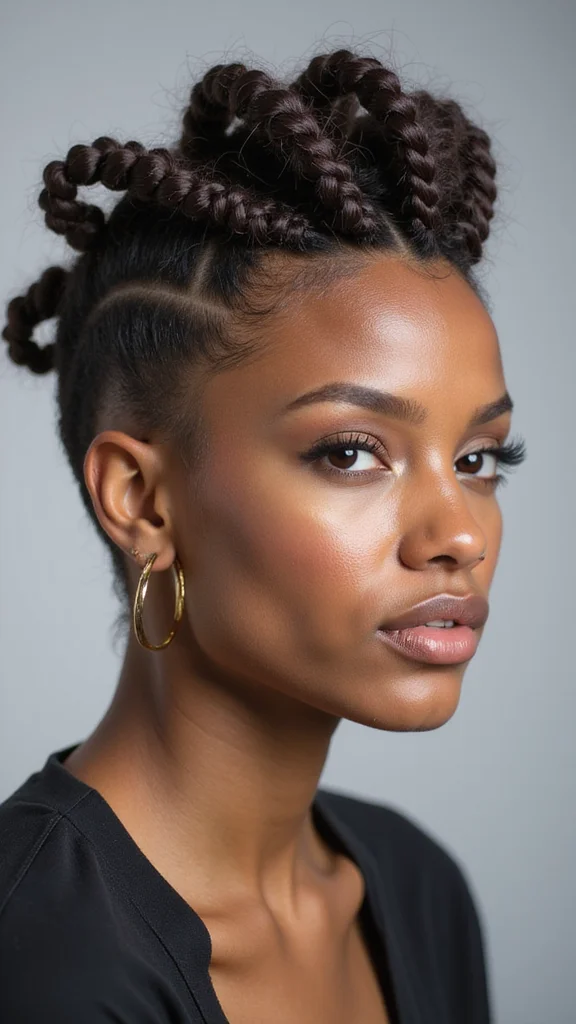 A sleek high bun with braided accents delivers a modern and sophisticated look. This hairstyle combines the elegance of a smooth bun with the creativity of braids, making it suitable for various occasions. You can find this chic style trending on many platforms, as it creates a striking contrast that catches the eye.