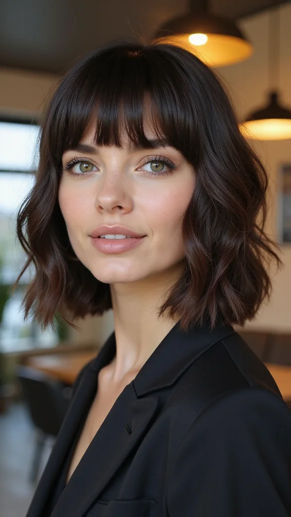 Soft fringe with waves lets your shaggy bob with bangs look romantic any day. Use a light mousse to hold gentle bends and trim the bangs regularly for softness. It’s casual enough for coffee runs, yet polished for evenings.