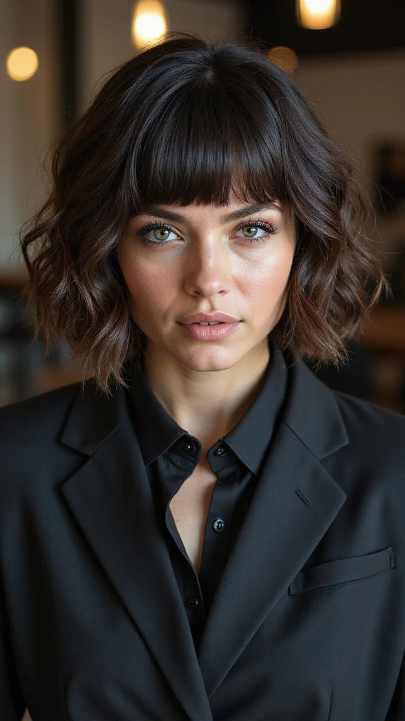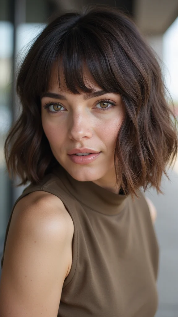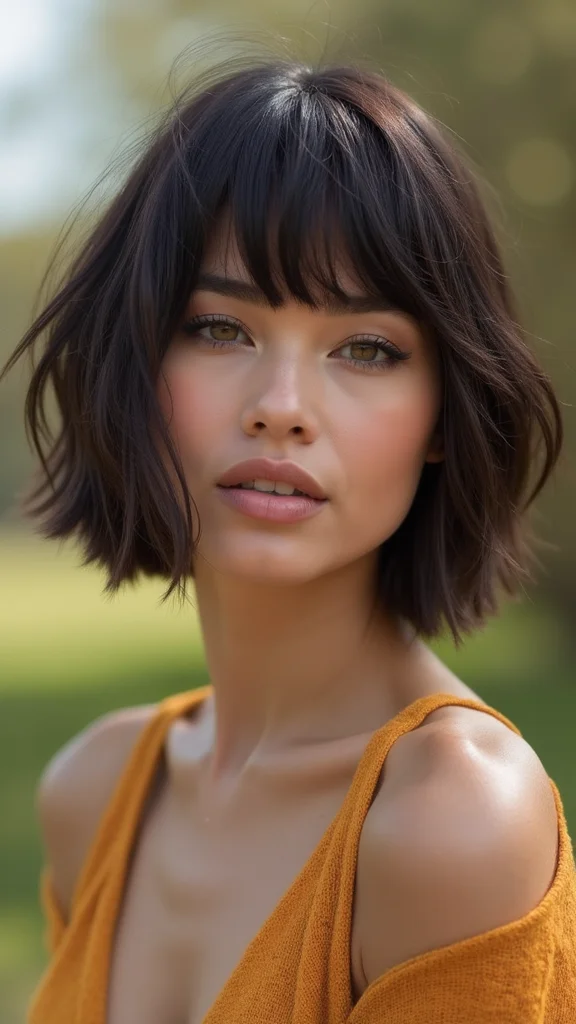 For a more dramatic spin, consider a blunt cut shaggy bob with sharp bangs. This style combines the traditional bluntness with shaggy layers for an eye-catching result. It’s ideal for those who love clean lines but want to keep it stylish. When paired with beachy waves, it creates a balanced look that’s bold yet approachable.