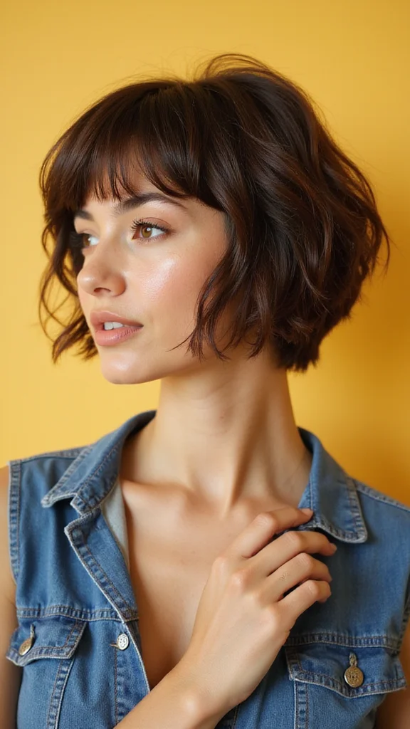 Finally, embrace the essence of ‘effortless’ with a shaggy bob and bangs! This style embodies laid-back chic, perfect for busy lifestyles yet still fashionable. Use minimal styling products—think simple texturizing spray or a bit of mousse to enhance natural waves.