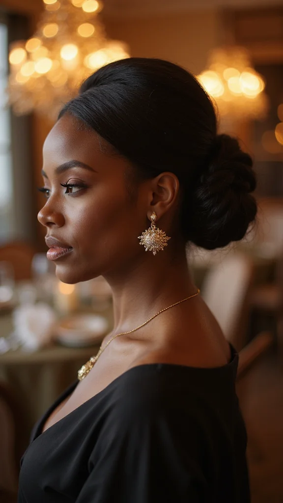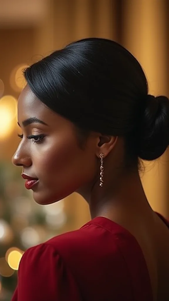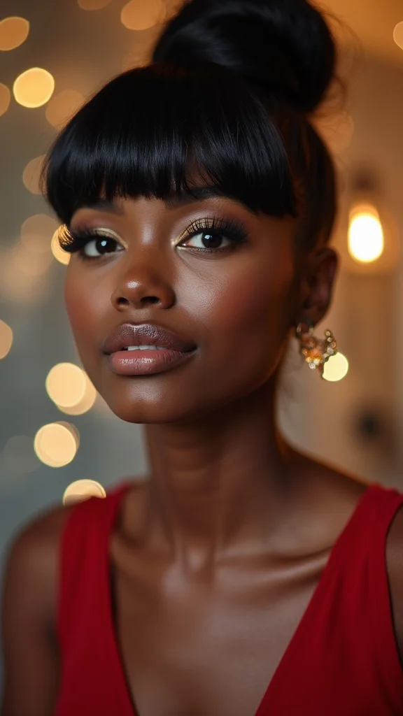 This look is versatile, transitioning easily from day to night, making it a must-have for holiday parties. Pair it with bold makeup for an added glam factor! For the best results, smooth your bangs with a flat iron for a polished finish and secure the bun tightly to keep it in place.