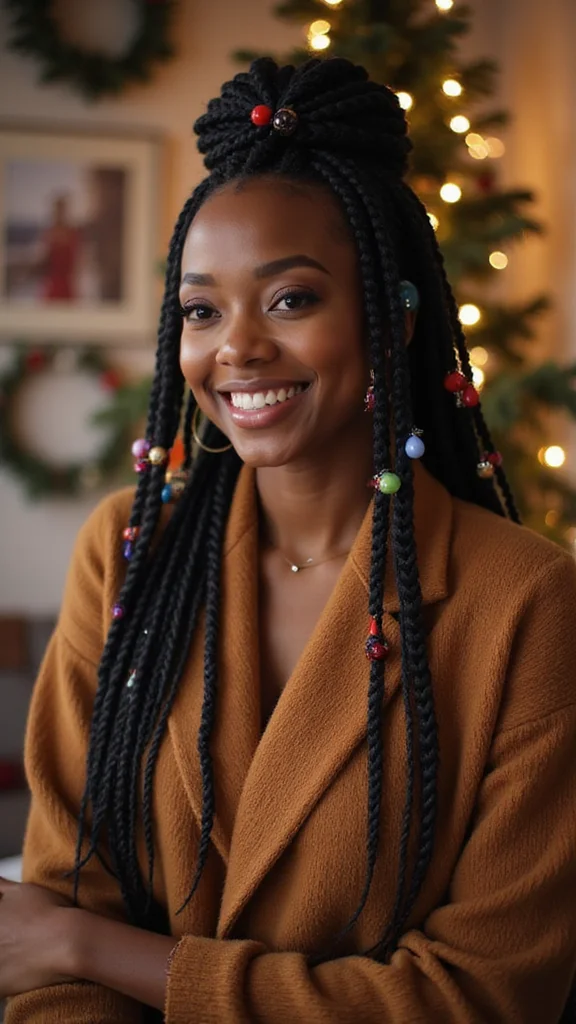 Classic box braids offer a stylish and protective option for your holiday season! These braids allow you to enjoy all your events without worrying about styling. Picture yourself with tightly braided sections adorned with colorful beads or cuffs, reflecting the festive spirit. This timeless look is a favorite among many during the holidays.