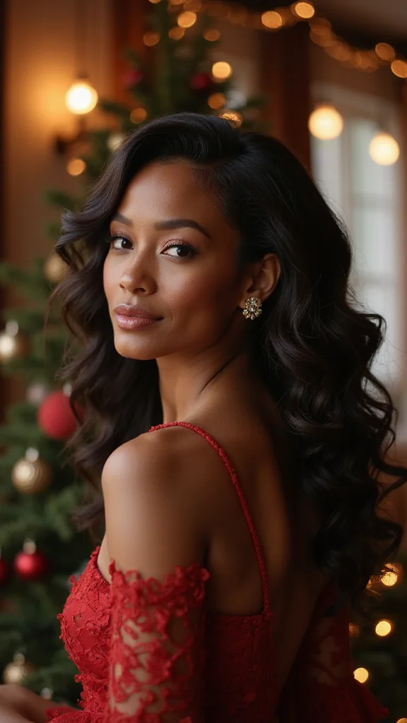 To recreate this style, use a curl cream for definition and volume. Thrift some decorative hairpins or a festive headband to elevate your look without breaking the bank. This hairstyle feels special and allows you to enjoy your holiday festivities with ease.
