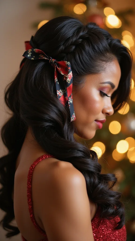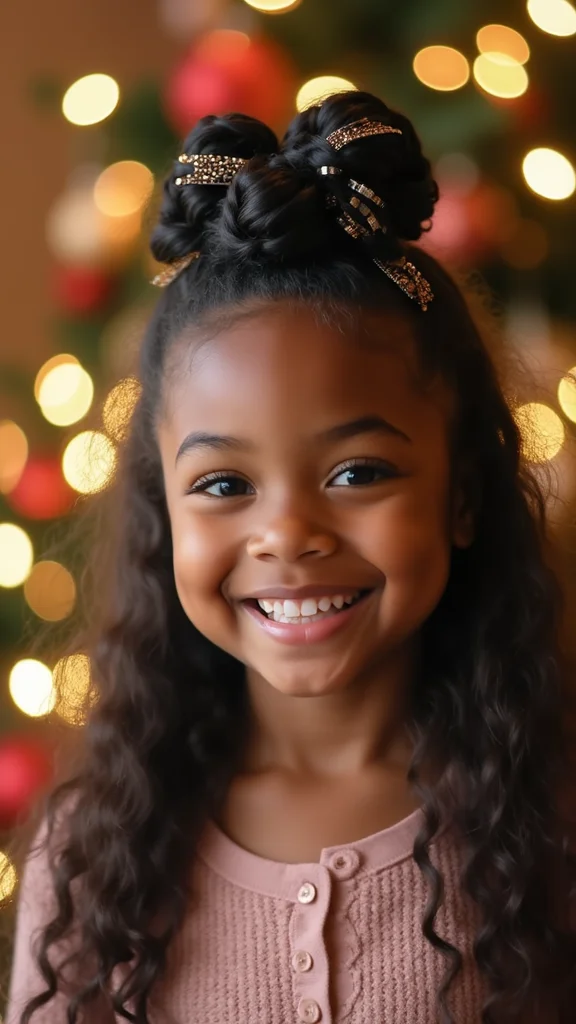 Add glimmering hair accessories or ribbons to celebrate the season! This style works beautifully for both casual and formal events, making it a versatile choice.