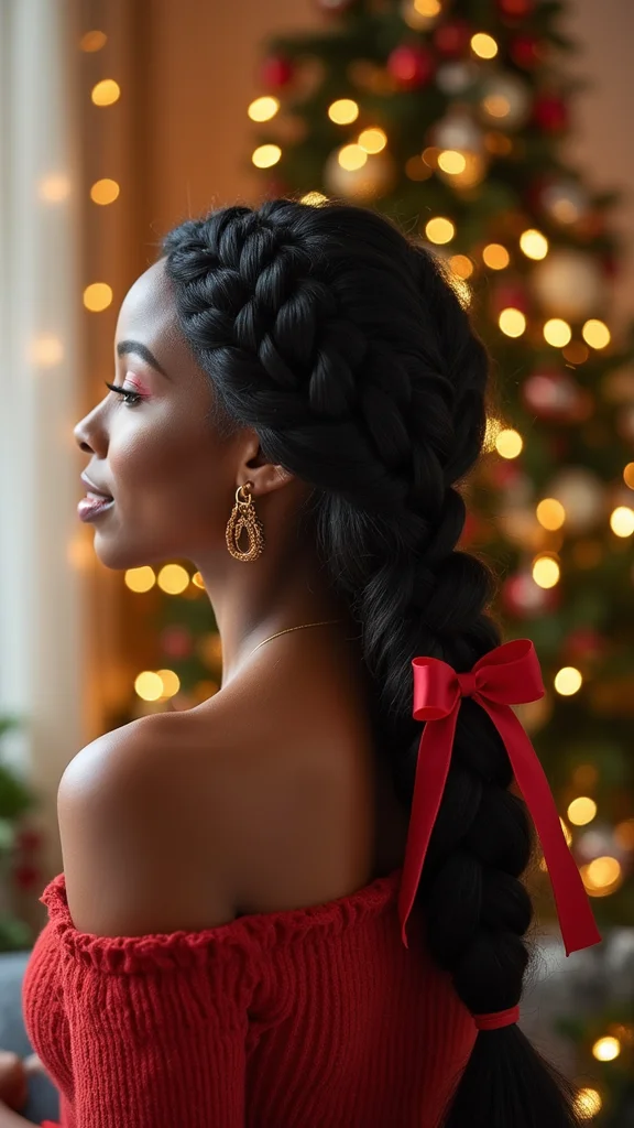 The classic French braid is a timeless and elegant hairstyle that suits any holiday occasion! Start by sectioning your hair at the crown and braiding downwards, pulling in hair as you go along. Secure the end with a band, and for a festive touch, wrap a ribbon around the braid. This style looks stunning while keeping your hair protected and out of your face, making it practical for busy holiday events.