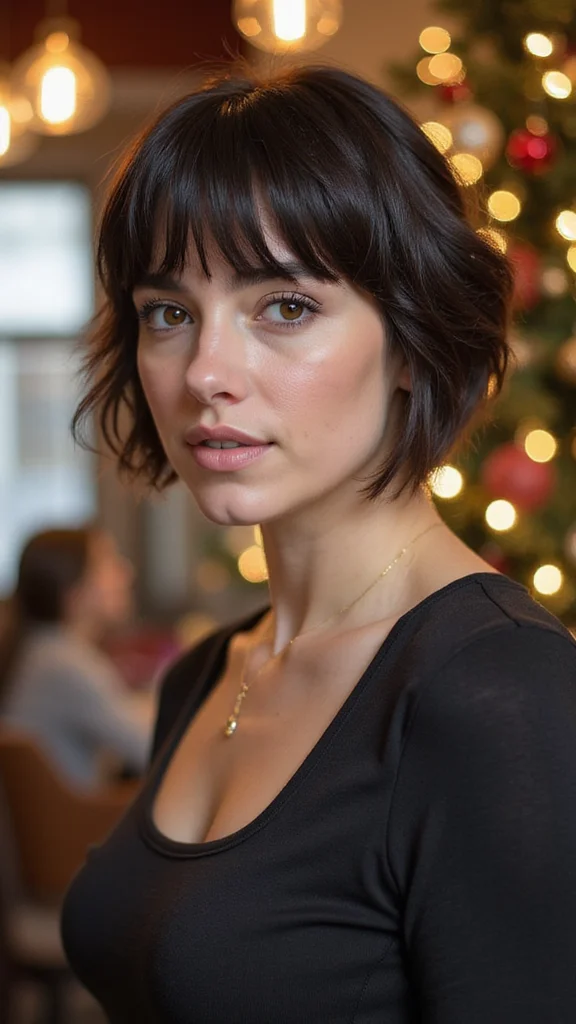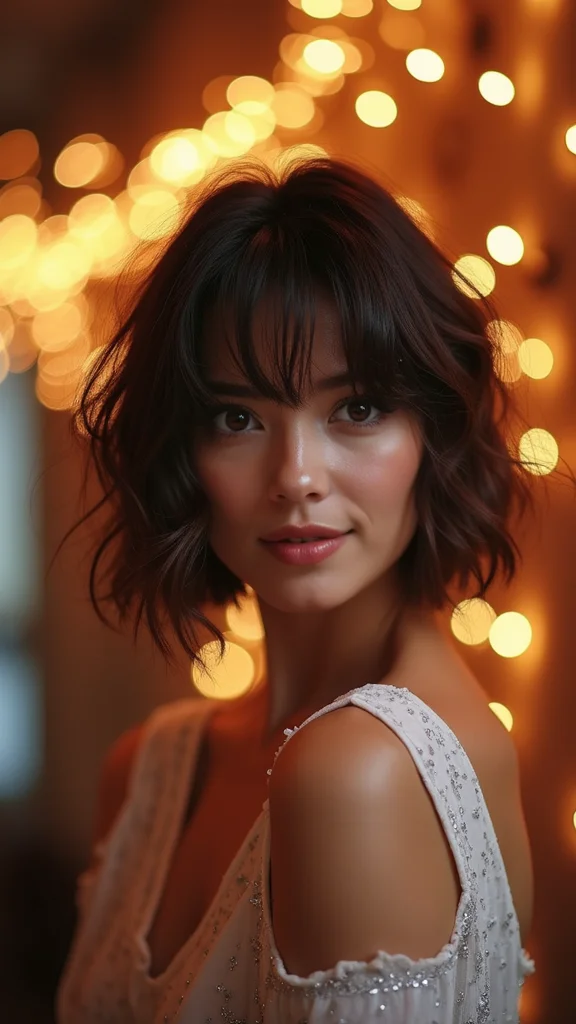 Feathered bangs paired with a textured cut offer a modern twist for the Christmas season. This hairstyle adds movement and dimension, making it a trendy choice for the holidays. The feathered bangs create a soft frame for your face, adding to the overall look.