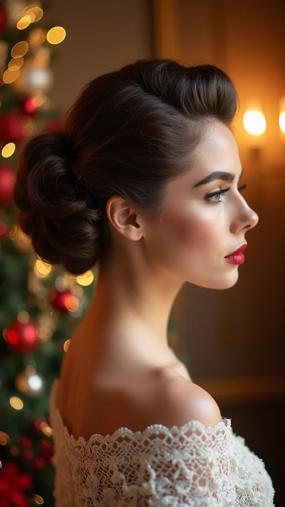 For a touch of vintage glamour, try a classic updo with a sleek finish. This hairstyle is reminiscent of old Hollywood and is perfect for formal holiday events. The polished look keeps your hair tidy while showcasing your elegant features.