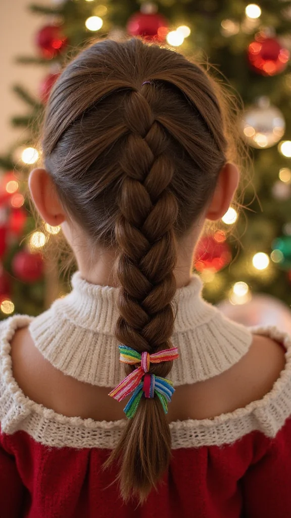 A fishtail braid adorned with colorful threads is a creative and playful holiday hairstyle! This style is stylish and simple to create, making it perfect for women on the go. The colorful threads add a festive touch, making the braid stand out.