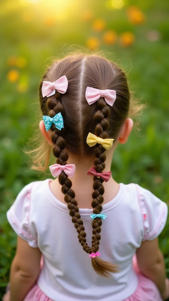 Pigtails are a beloved hairstyle that brings joy and energy to any little girl! They create a cheerful look that’s perfect for playdates or family outings. Start by parting the hair down the middle, then gather each side and secure with colorful hair ties. Add some fun bows or ribbons to elevate the style. Pigtails keep hair out of your child’s face, allowing for carefree movement as she plays.