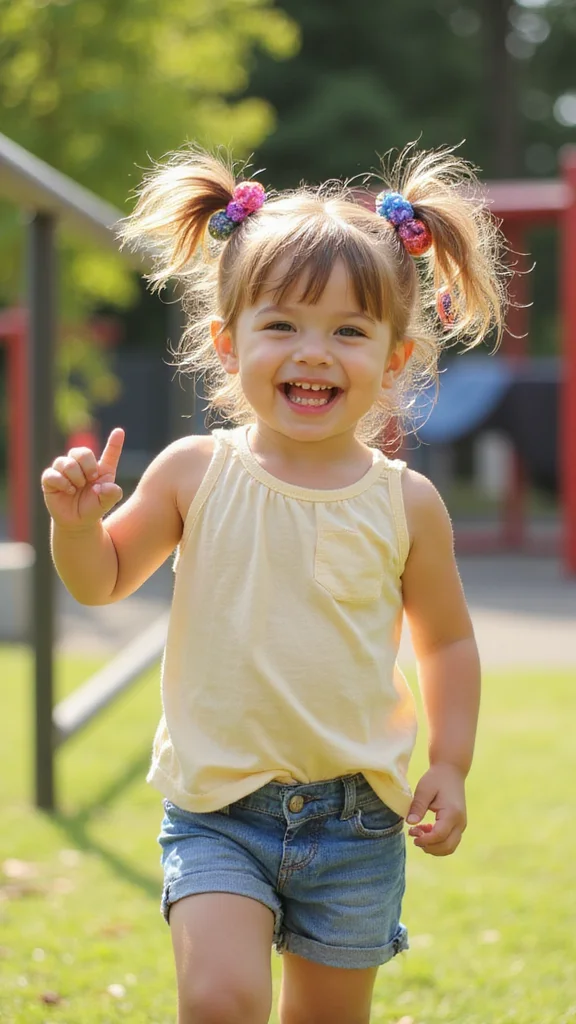 Add colorful elastics or hair ties to make the style pop. Funky ponytails are perfect for school days or casual outings, allowing your little girl to express her personality while keeping her hair manageable.