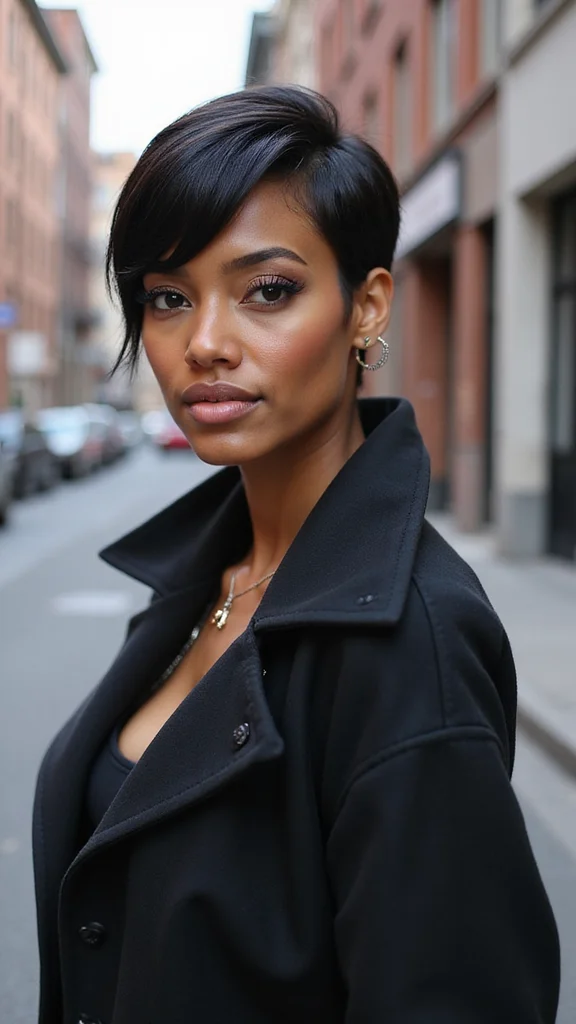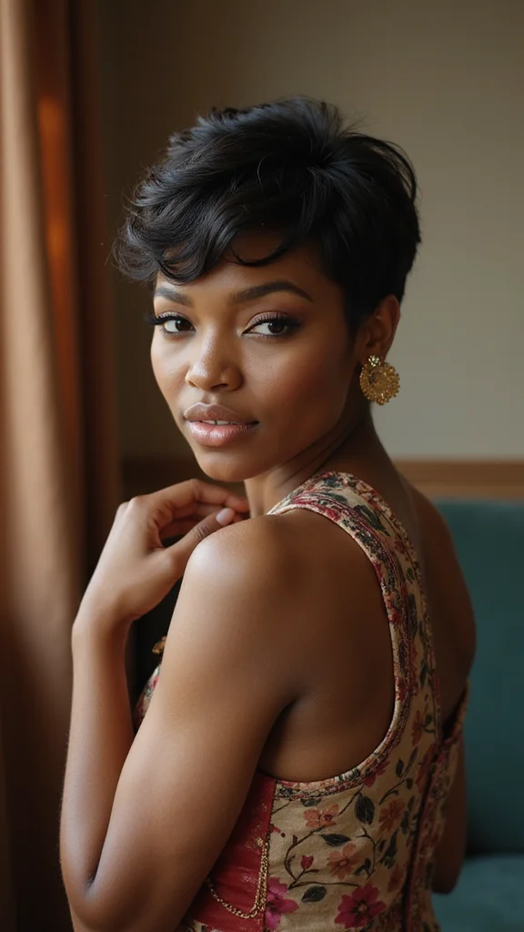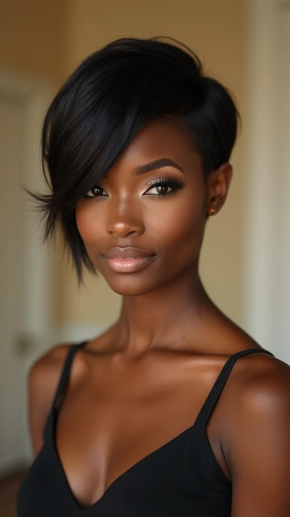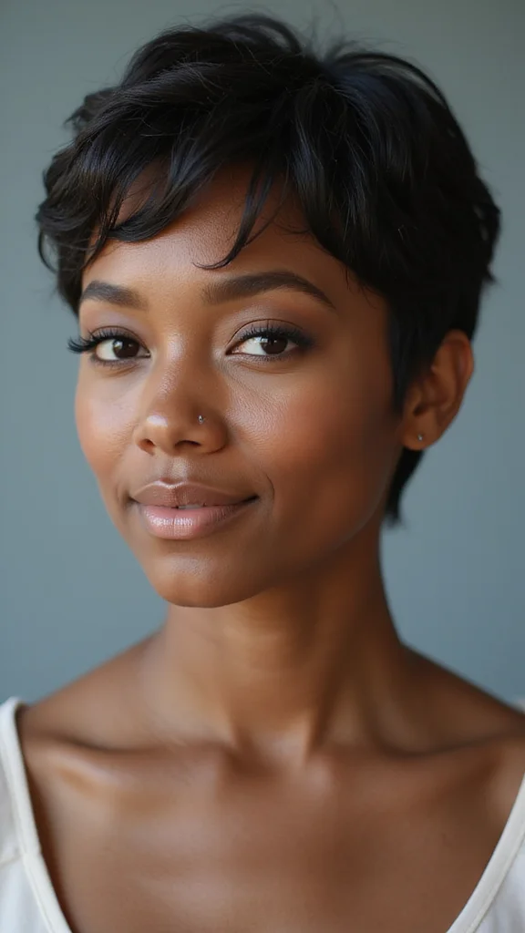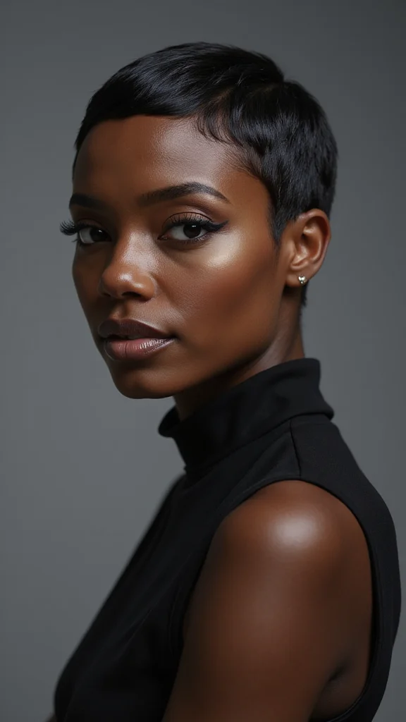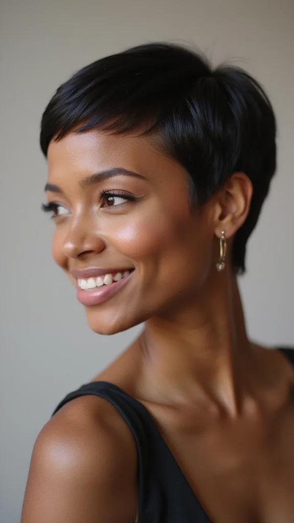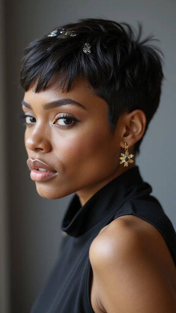 ❝ Elegance with a pixie is all in the finishing touches. A quick smoothing serum and a couple of chic clips can transform any pixie cut black women into red-carpet-ready style for weddings and galas—no fuss, just polish. ❞